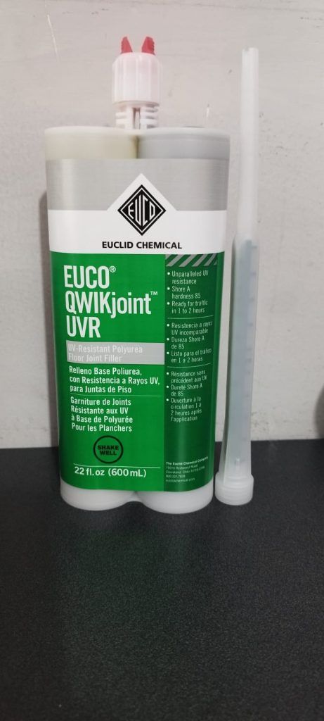 EUCO QWIKJOINT UVR representa una nueva generación de tecnología en poliurea con características y beneficios a diferencia de cualquier otro relleno de poliurea en el mercado. EUCO QWIKJOINT UVR resiste la decoloración de la luz ultravioleta mejor que cualquier producto existente. Es una poliurea semirrígida de fraguado rápido, utilizada principalmente para rellenar juntas de construcción y control en pisos industriales y comerciales. EUCO QWIKJOINT UVR puede rasurarse al ras del piso poco después de la colocación o hasta 24 horas después. EUCO QWIKJOINT UVR apoya y protege los bordes de las juntas de cargas pesadas y el tráfico de las ruedas, reduciendo el desprendimiento de los bordes de las juntas.